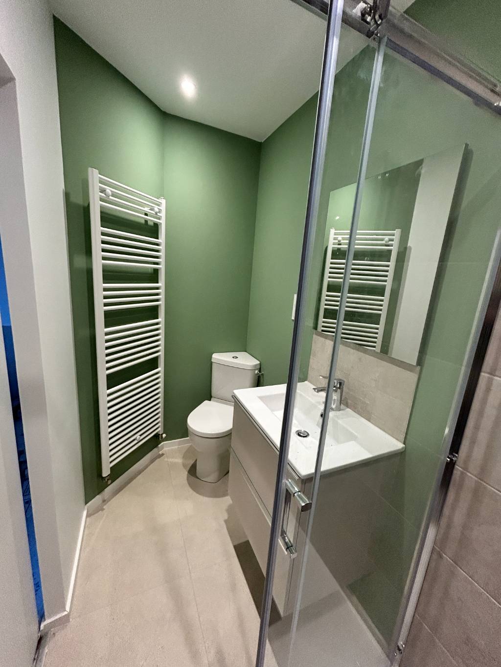 Les propriétaires souhaitaient donner leur indépendance à leurs invités, ils ont donc souhaité créer une salle de douche avec wc dans la chambre d'amis.